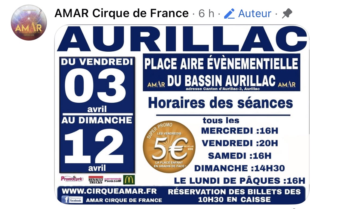 BON DE COMMANDE PLACES AURILLAC EN SCENE VENTE DES BILLETS "CIRQUE AMAR" A L'AMICALE LE 24 MARS ET LE 31 MARS 2026 |